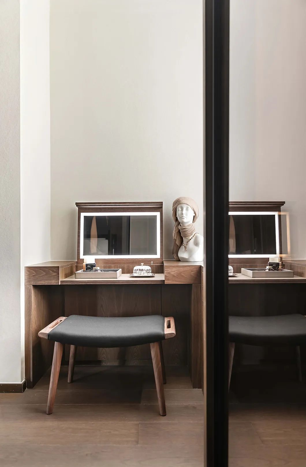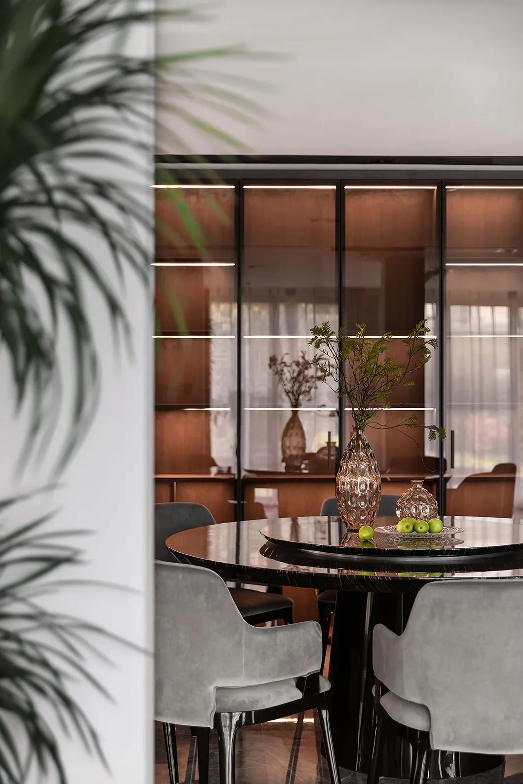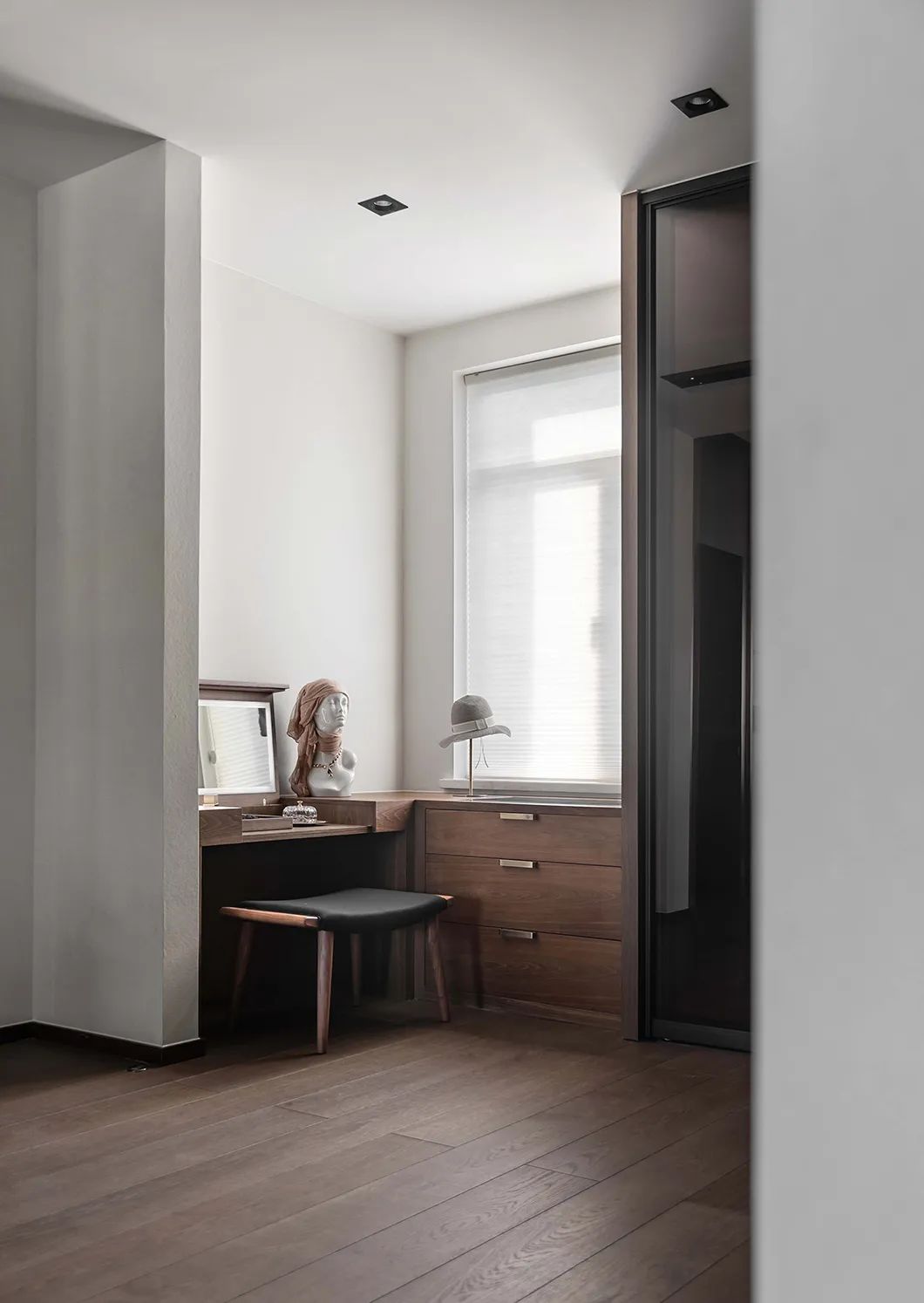 本案,设计师将“ 艺术是一种和自然平行的和谐体 ”的设计理念、细致入微的情感考量,渗入居住的每一个角落,来传达“品质与自然如影随形”的生活理念,达到诗意栖居与和谐环境的美学建构。