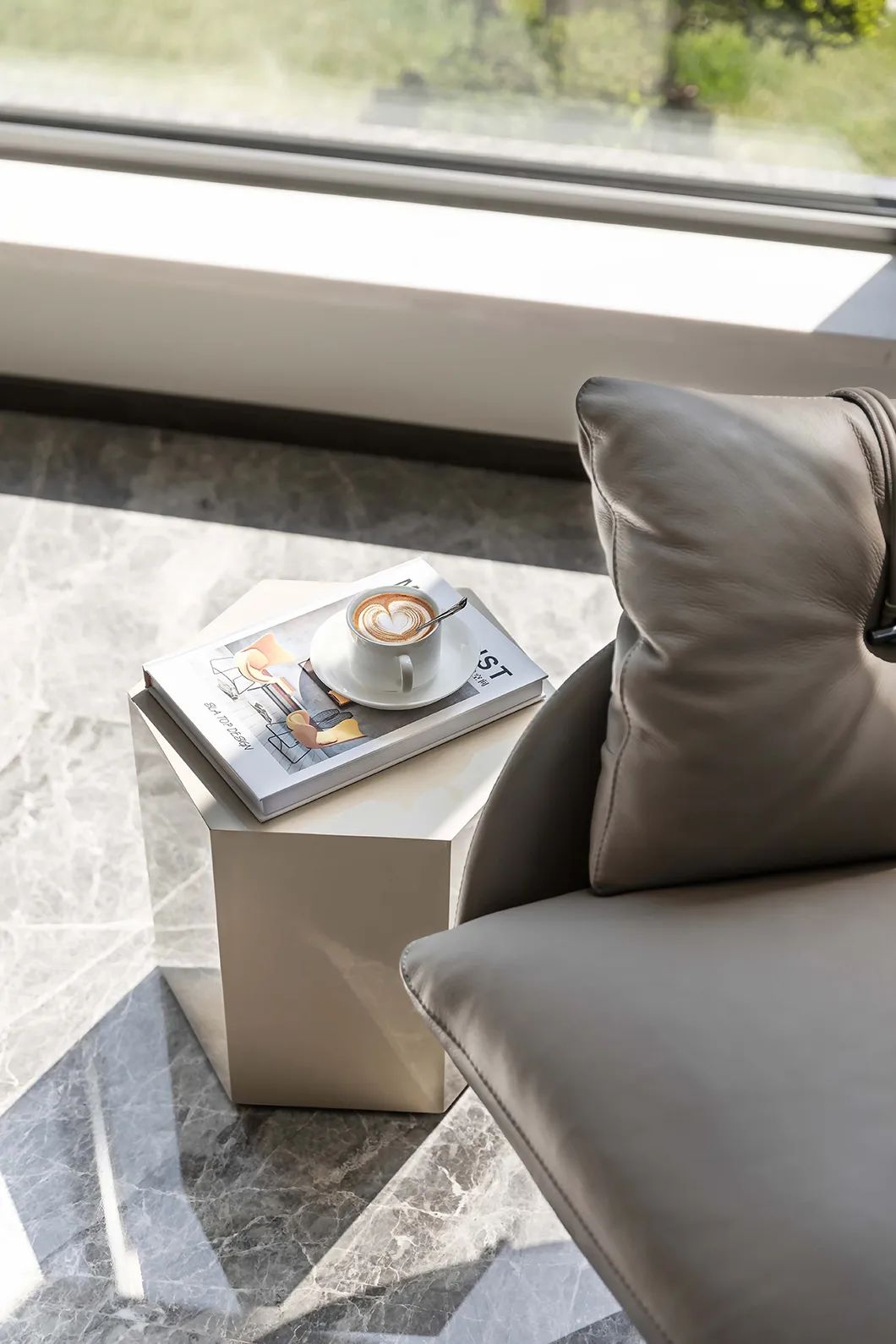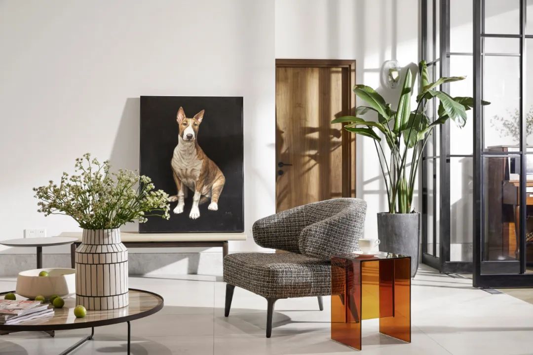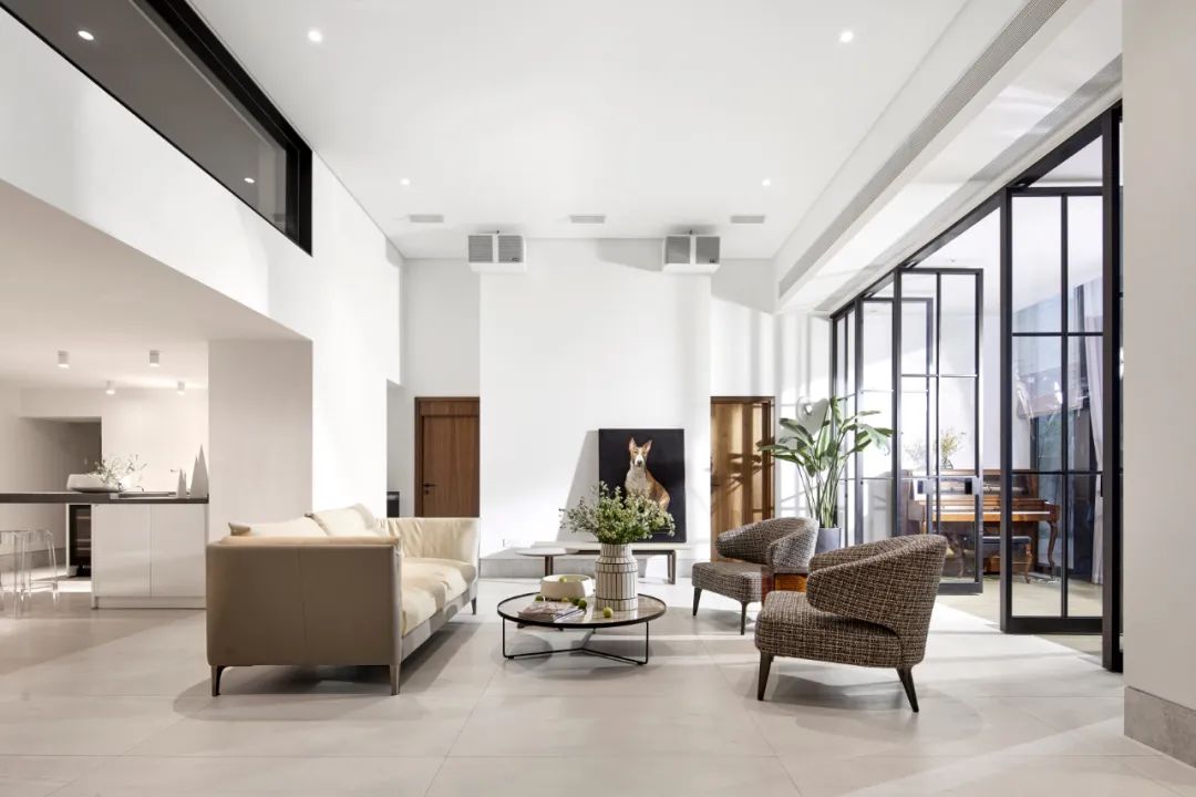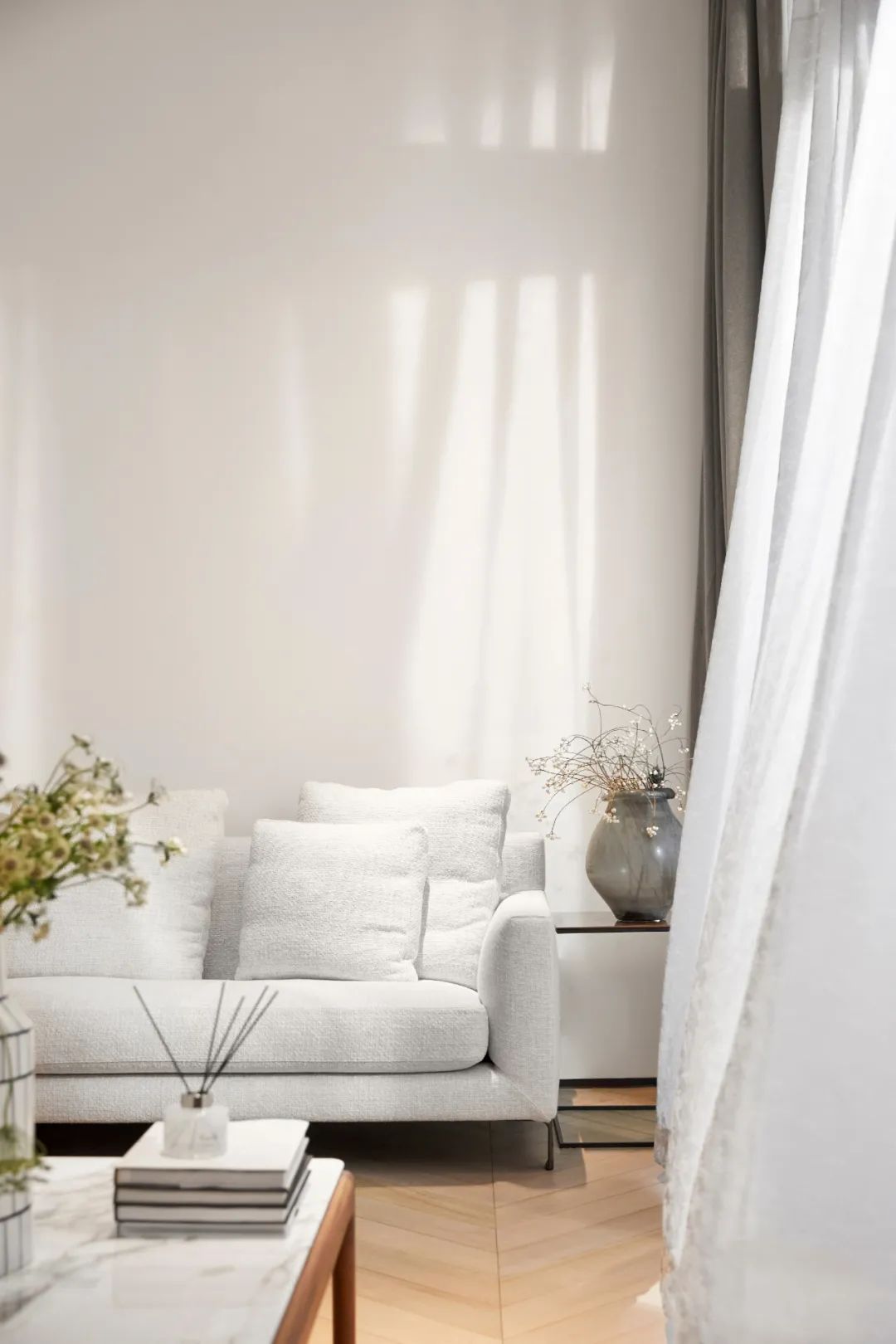 本案,设计师将“ 艺术是一种和自然平行的和谐体 ”的设计理念、细致入微的情感考量,渗入居住的每一个角落,来传达“品质与自然如影随形”的生活理念,达到诗意栖居与和谐环境的美学建构。