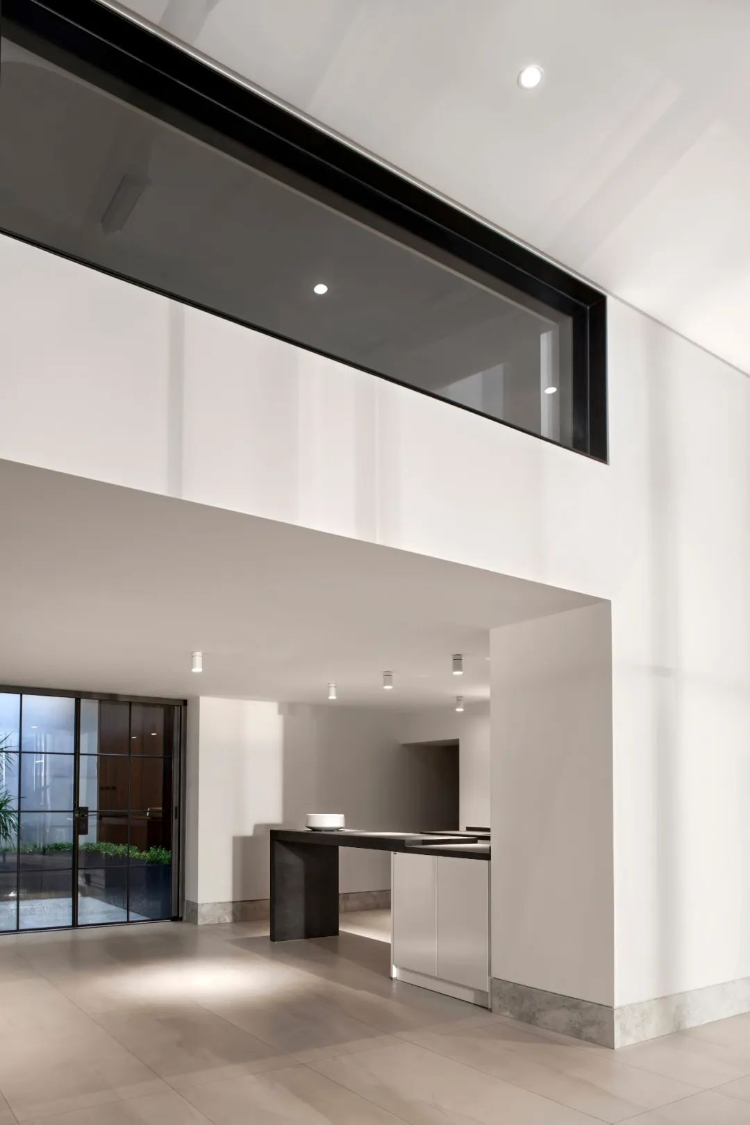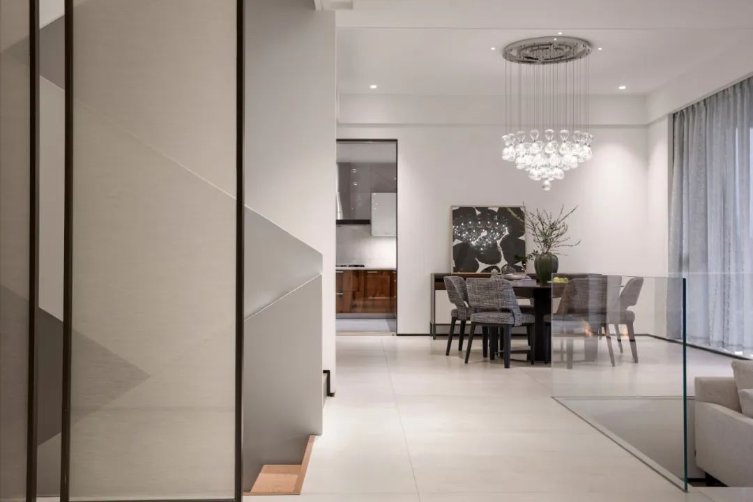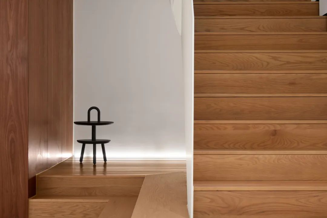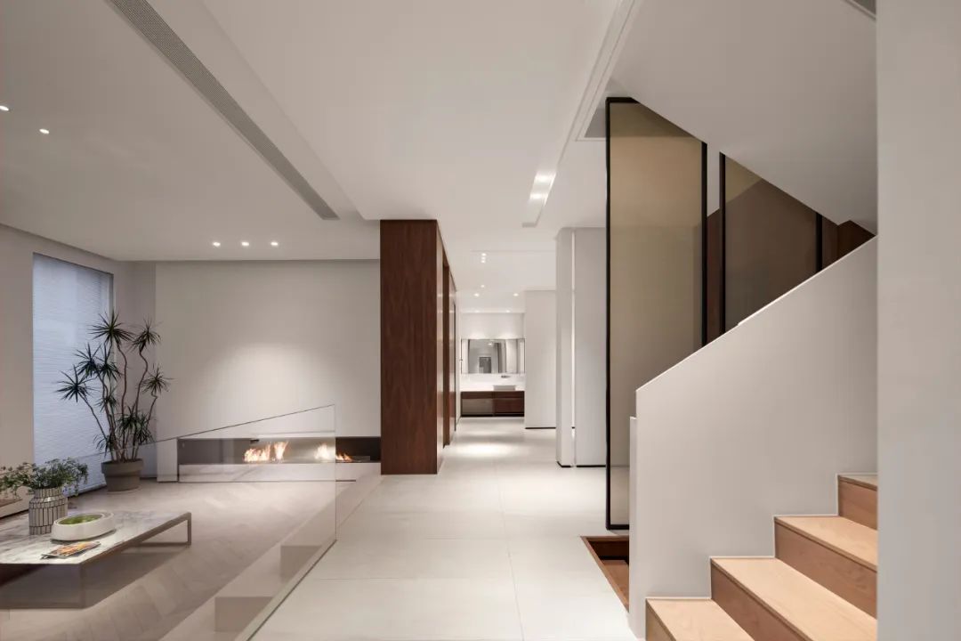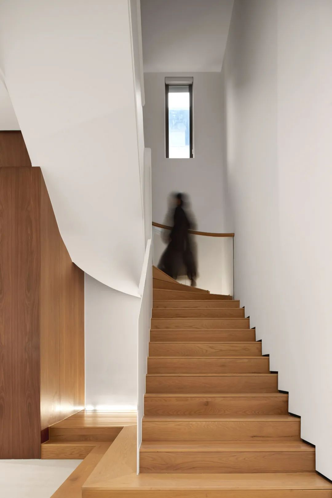 楼梯的设计犹如伏在钢琴上的黑白键。仿佛将琴声带入空间,舒缓的音调,轻轻滑过心尖,光影的变换增加了整个楼梯间的张力皆能步移景异。