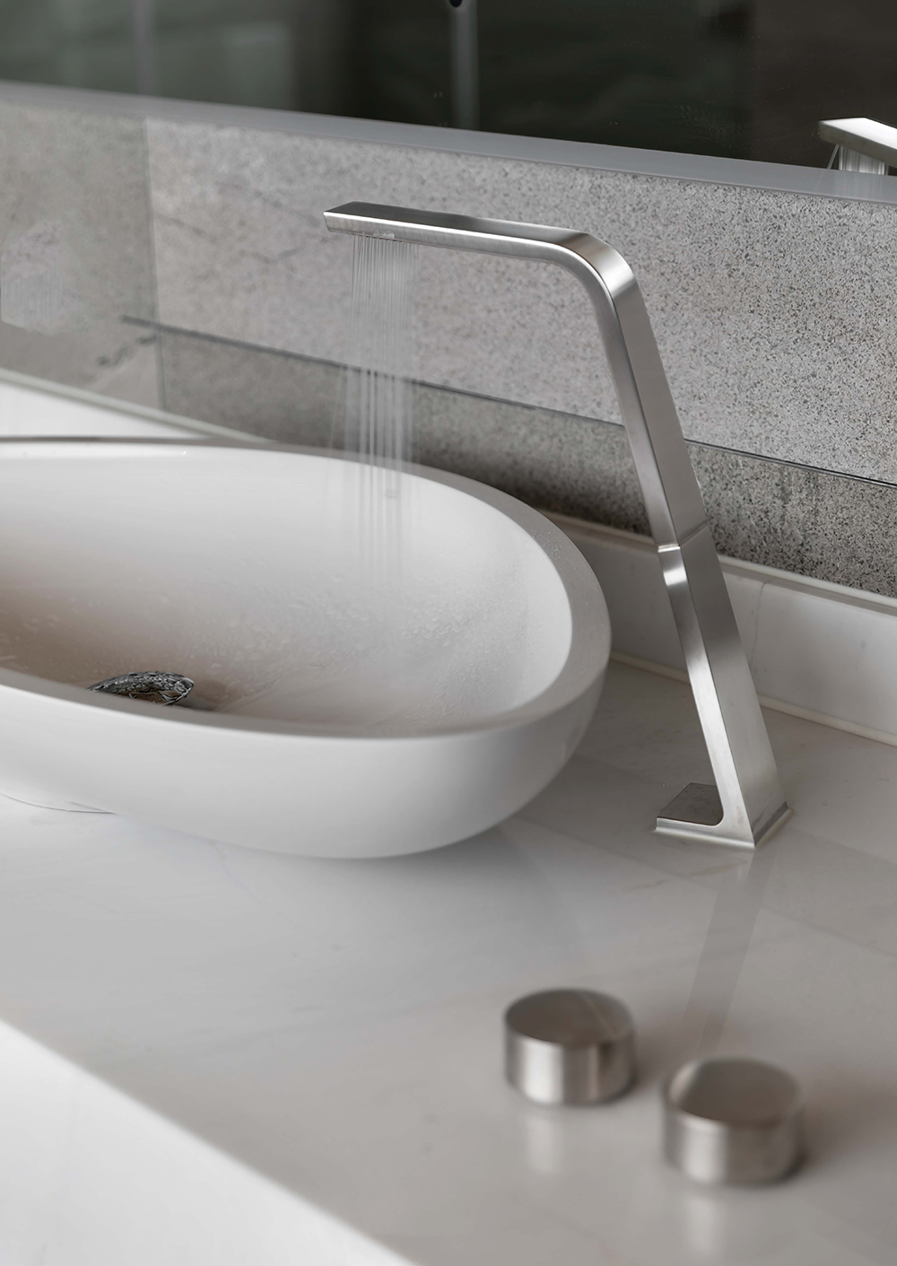 意大利奢侈品牌falper洁具,以完美几何形状为特征的L形龙头到可演变为曲折轮廓的弧形浴缸,多种元素的结合营造出亲密温馨的空间氛围。
