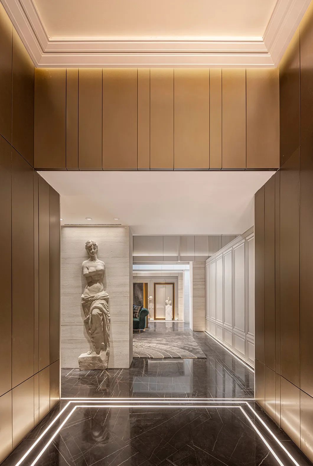 别墅的地下空间结合顶层人士向往尊贵舒适的生活方式,融入现代的奢华和欧式的浪漫,为热爱艺术的人士打造专属的精神领地,尽显顶级珠宝般的精致设计感。