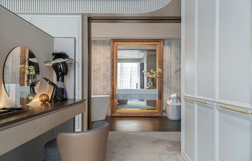 设计师将其连同主卫的雕花边框,营造优雅高贵的复古氛围。