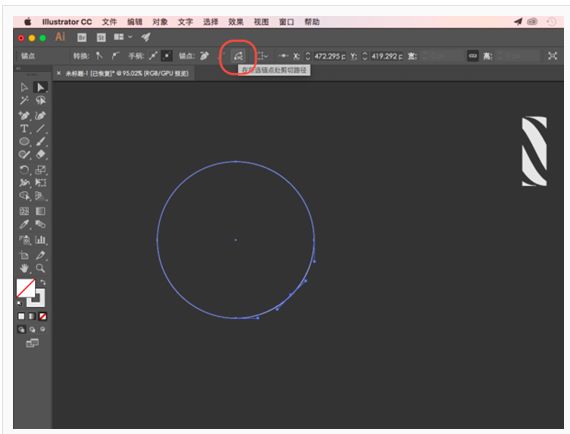 选中刚刚添加的锚点,点击在所选锚点处剪切路径: